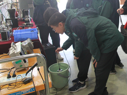 在实验室参观环节,同学们来到水声实验室近距离接触消声水池,参与声呐探测实验,观察水中目标的回波,深入了解利用声学设备开展水声试验的环境与方法以及水声设备在海洋资源探测中的重要性,切身感受海洋声学的独特魅力。